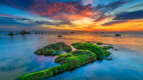 南戴河水温适度;海滩沙细柔软,无污泥烂草,海水清澈透明,水底无礁石碎块。书法家张仲愈先生来畅游时曾挥毫写下"天下第 一浴"五个大字,是进行海浴、沙浴、日光浴的理想佳所。