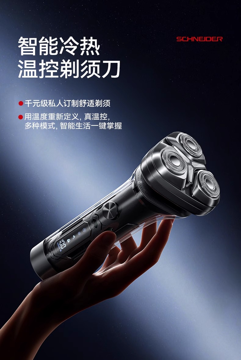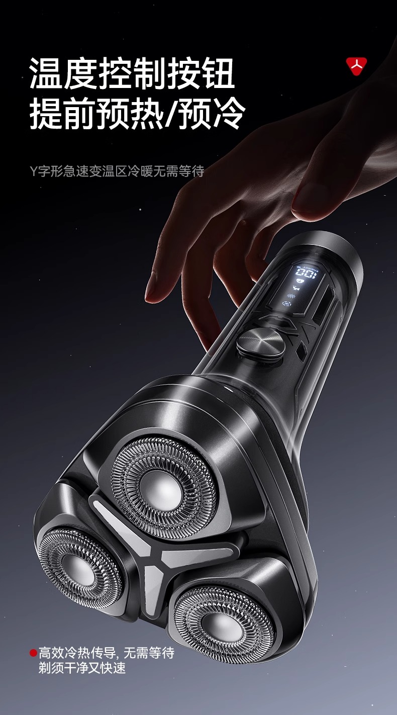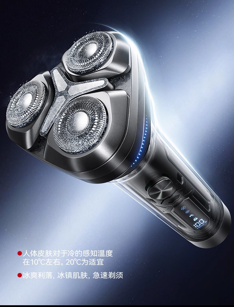 智能冷热温控剃须刀 冬季40℃热感模式 夏季20℃冰感模式 支持无线充电 磁吸刀头 一秒拆卸 易清洗