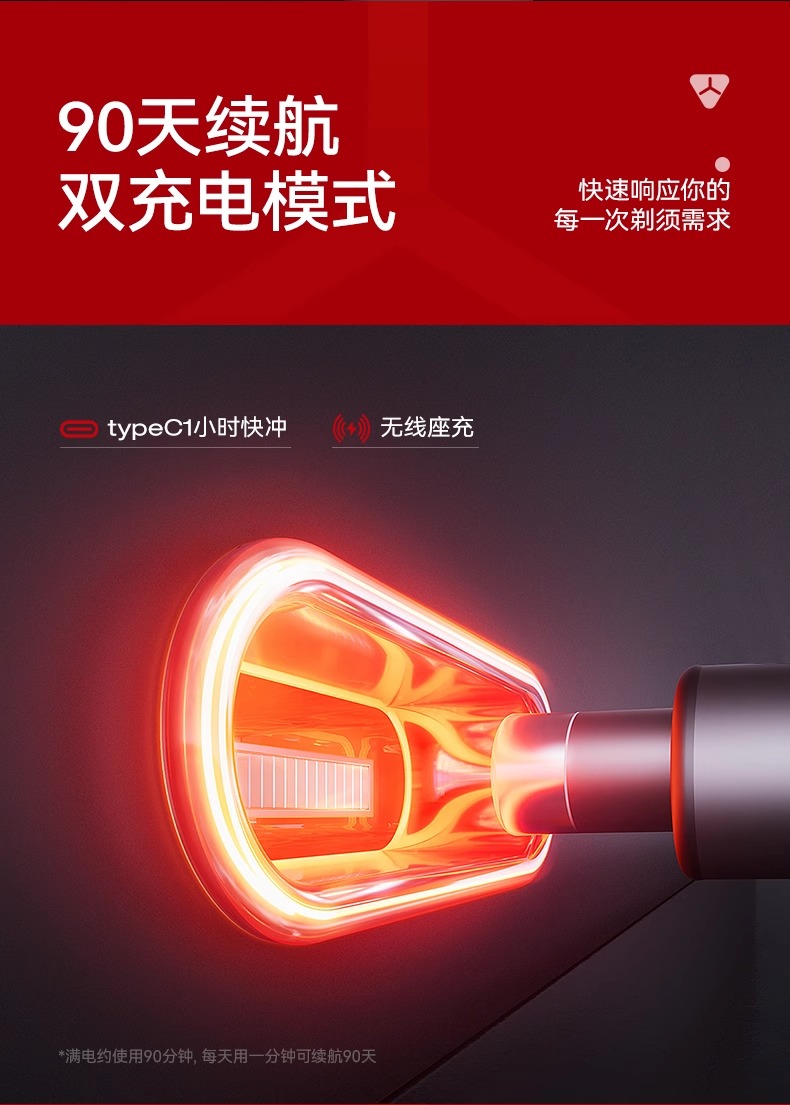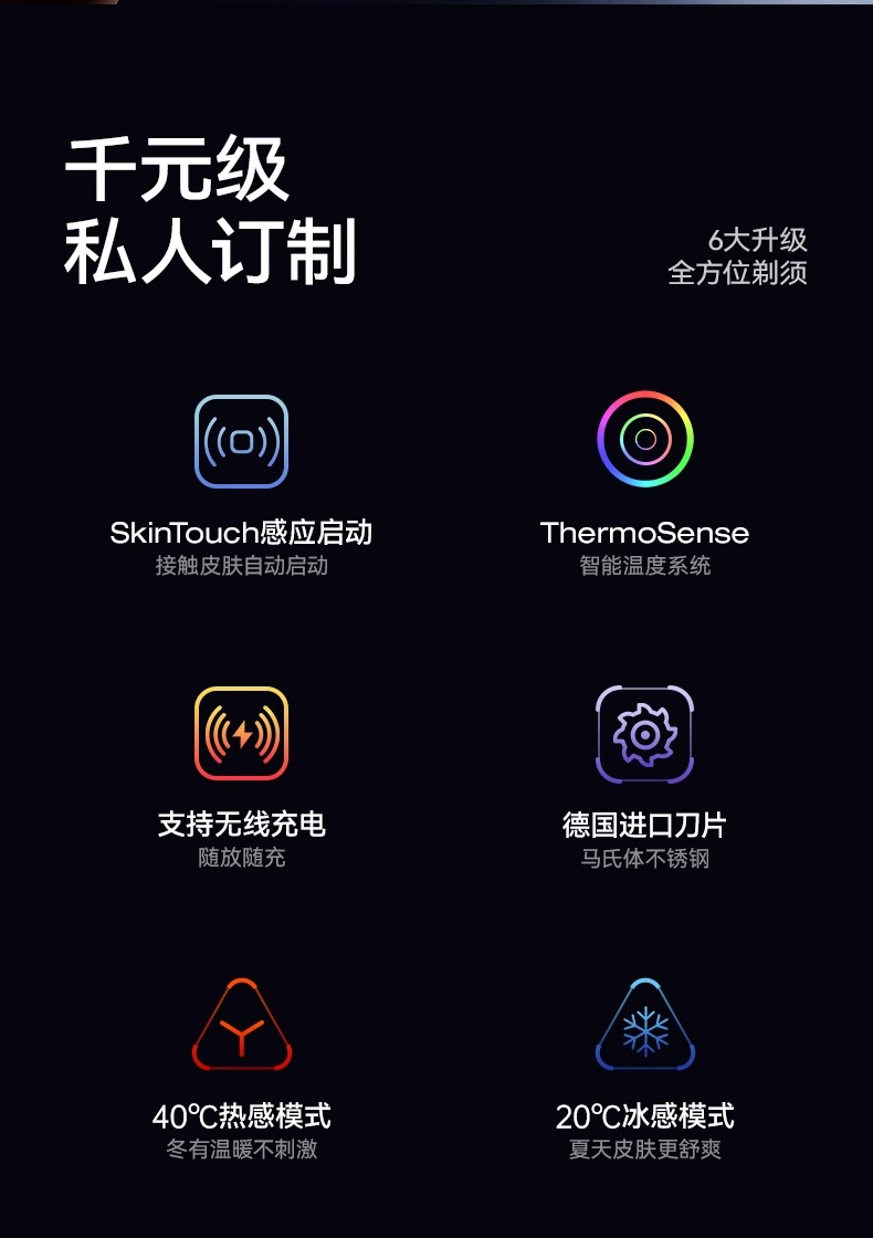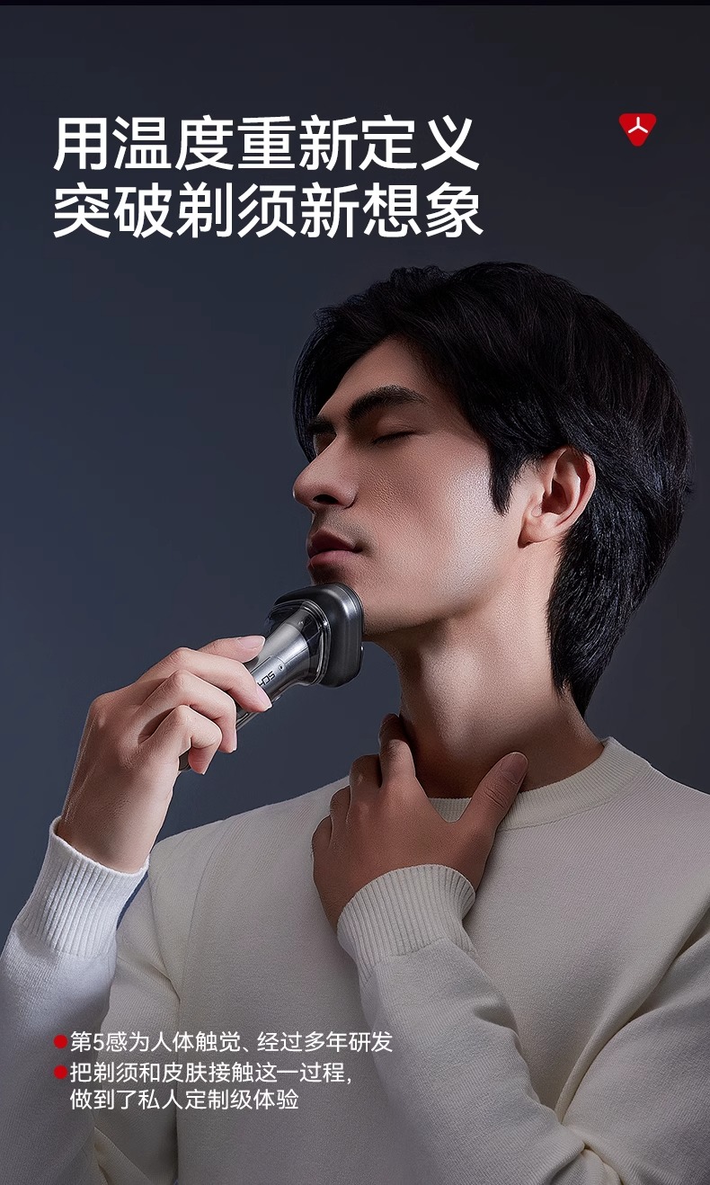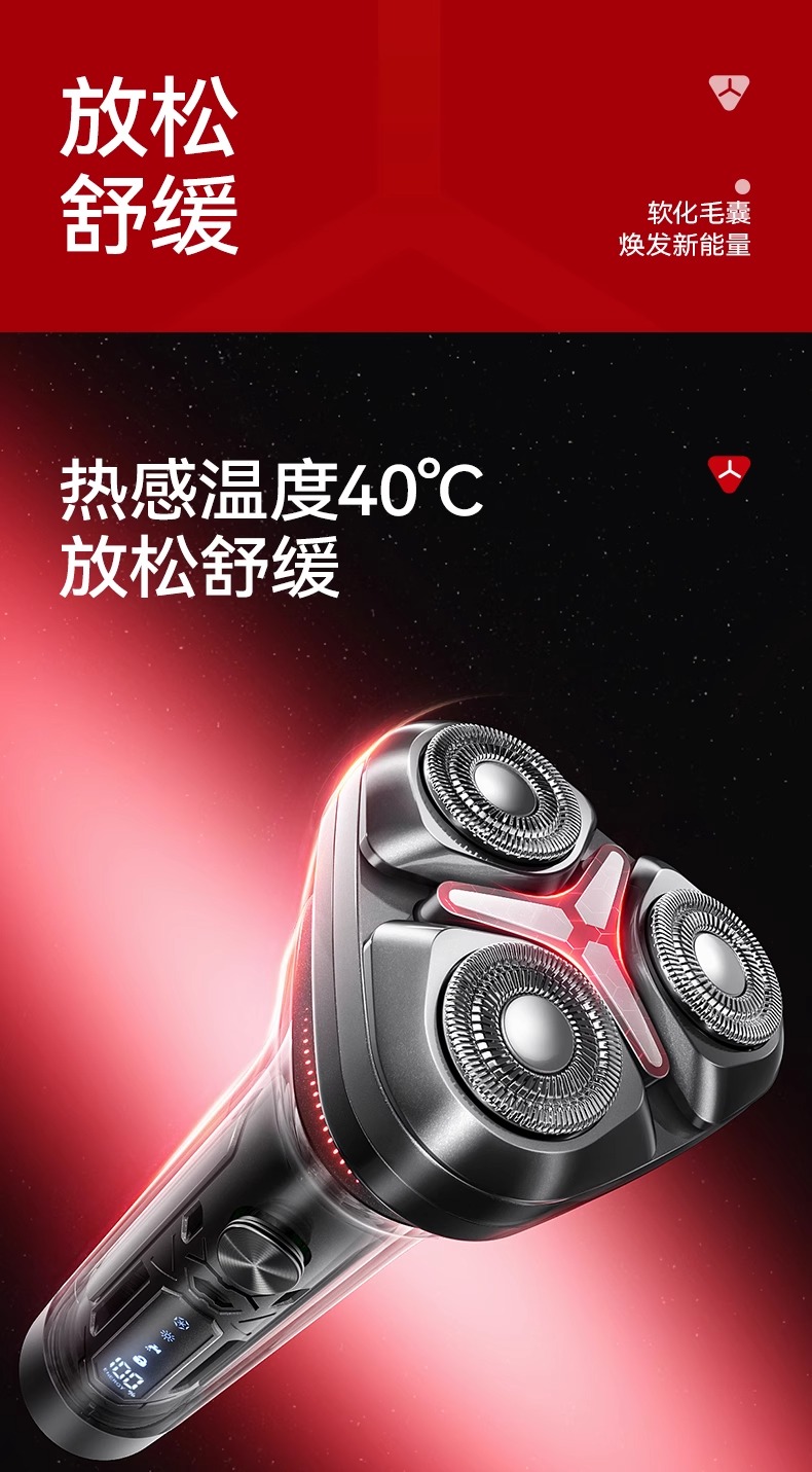 智能冷热温控剃须刀 冬季40℃热感模式 夏季20℃冰感模式 支持无线充电 磁吸刀头 一秒拆卸 易清洗