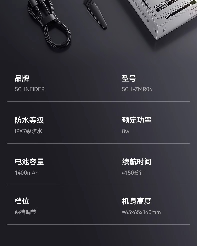 SCHNEIDER(施耐德)剃须刀 SD-SCH-ZMR06 云墨灰 合金+精钢刀片 防水等级:IPX7 额定功率:8W