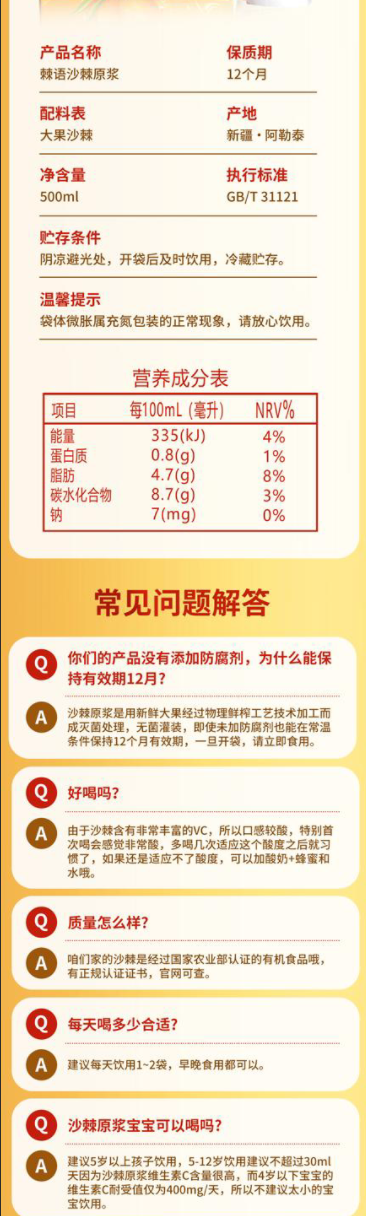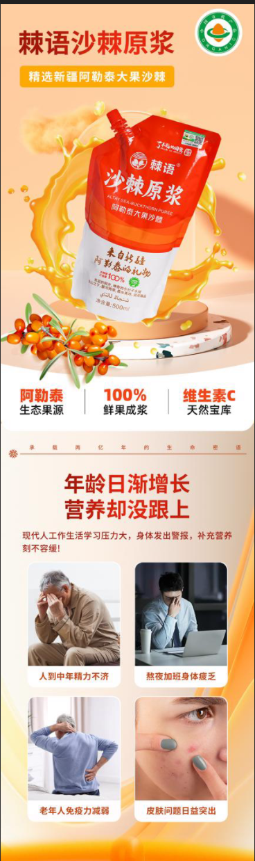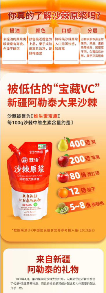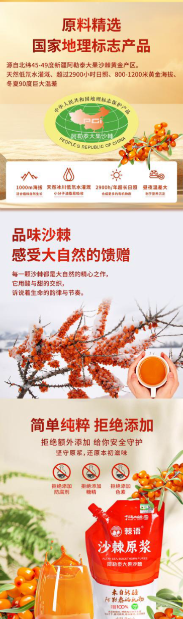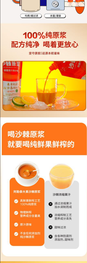 精选阿勒泰生态果源 100%鲜果成浆 大果沙棘 天然宝藏 多重营养 不止VC 简单纯粹 拒绝添加 配方纯净 喝着更放心